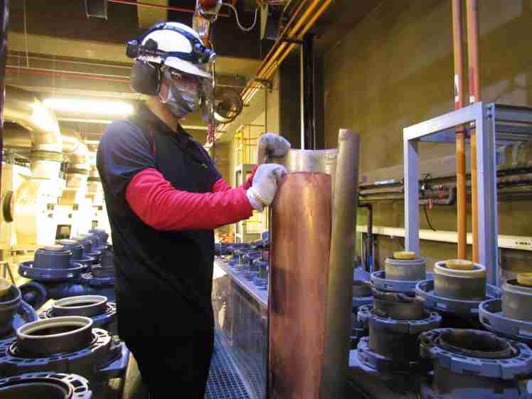 巨星国际将废弃物转化成有效的工业或民生原物料,,,,图为废铜液淬炼后再制成纯度极高的铜管