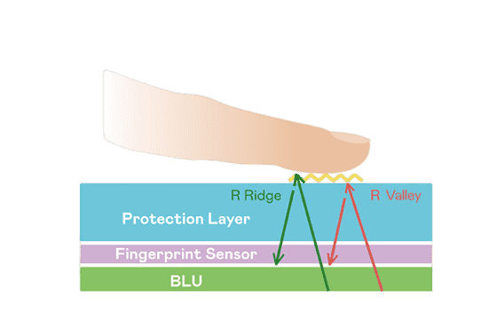 TFT 指纹扫描感测技术利用薄膜电晶体 (TFT) 当作光感测元件,,藉由非晶硅 (a-Si) 与低温多晶硅(LTPS)既有光电转换特性对不同波段光源进行吸收,,使感测 IC 读取阵列感测元件的光漏电差异,,转换成数位灰阶影像。。。